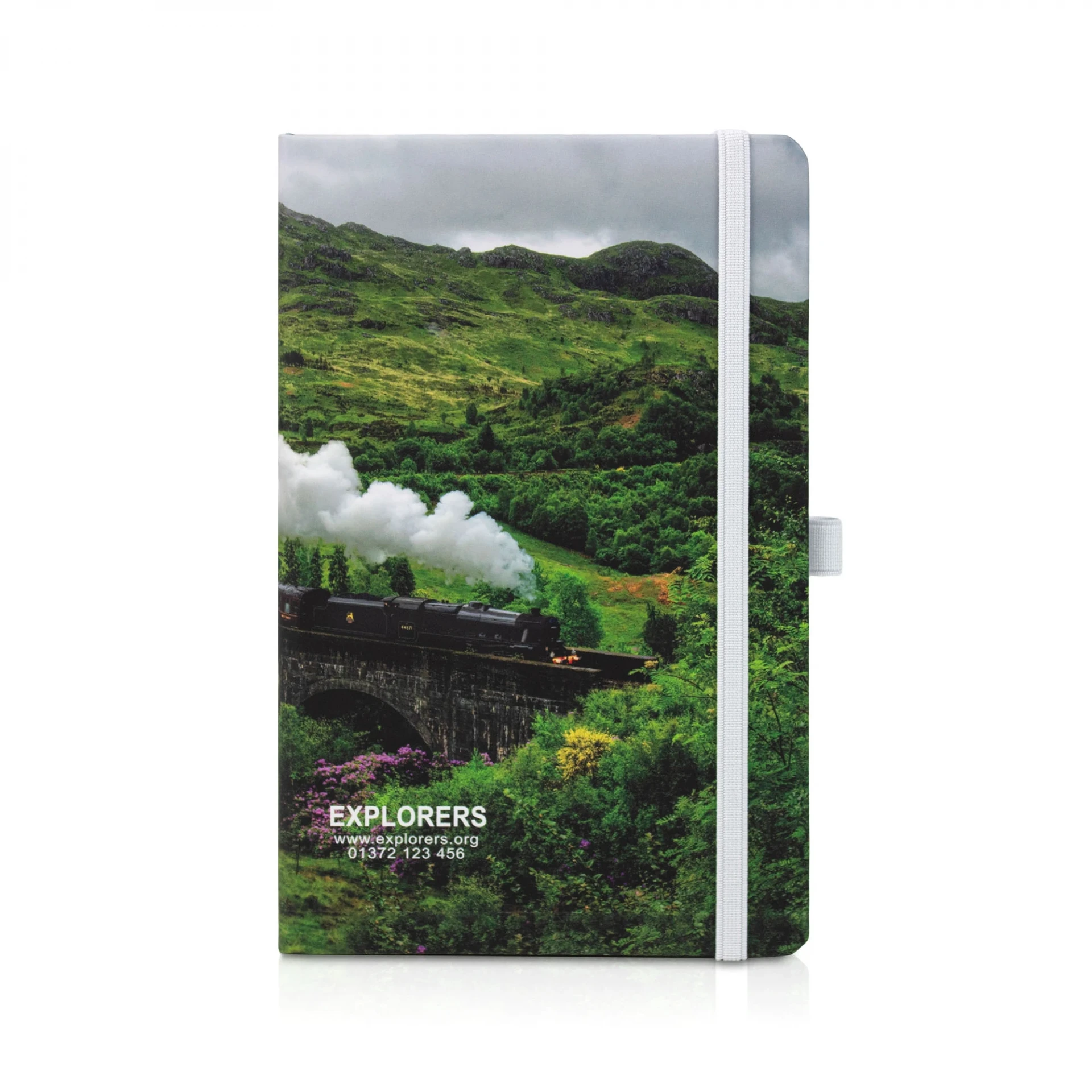 In stock Yes Size A5, B5, A4 Paper type White lined, White plain, White squared, Ivory lined, Ivory dotted, Bespoke Paper weight 70gsm Material Laminated paper Commodity code 4820103000 Minimum order qty 100 Branding options full colour print, foil, liquid metal print SX Customisable options Size of book, ribbon, pen loop, elastic, inner block design, end paper colour, pocket colour Extra options Bespoke printed pages, bespoke printed end papers, bespoke printed pocket, tip-in pages, belly bands, perforated pages, padded covers, French groove spine, heavier paper weight, more pages, recycled paper Branded lead time 20 working days - Image library
