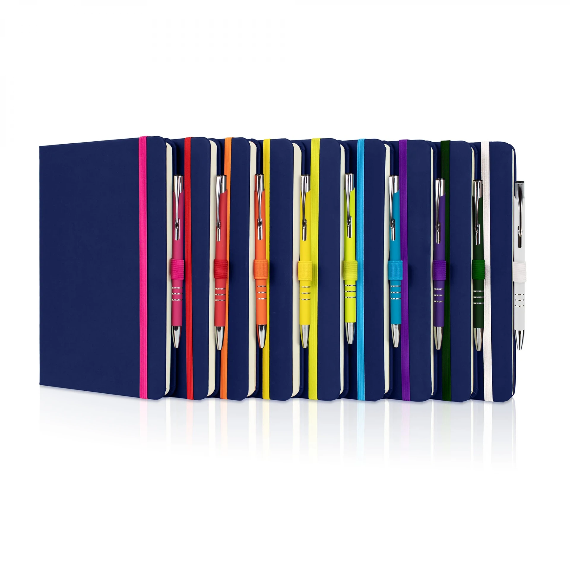 | Branding options | Notebook: Spot colour printing, deboss/foil, digital print (half or full cover). Pen: digital/spot colour print |