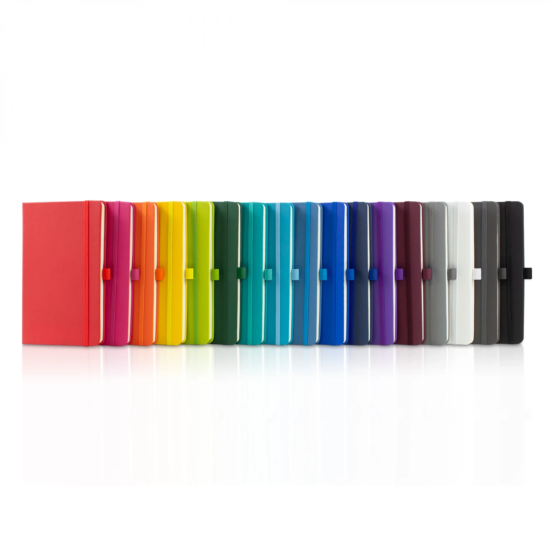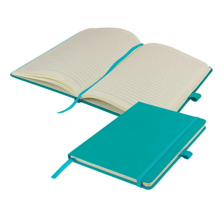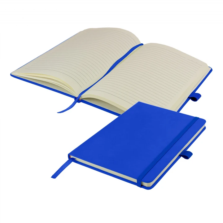 MORE COLOURS ADDED TO THE RANGE: Value for money A5 notebook suits smaller budgets whilst still offering a range of branding options. The Watson notebook offers a hardback soft-feel PU cover in a choice of 17 popular colours. Supplied with colour matched pen loop, ribbon and elastic closure and contains 160 Ivory lined pages with date marks.